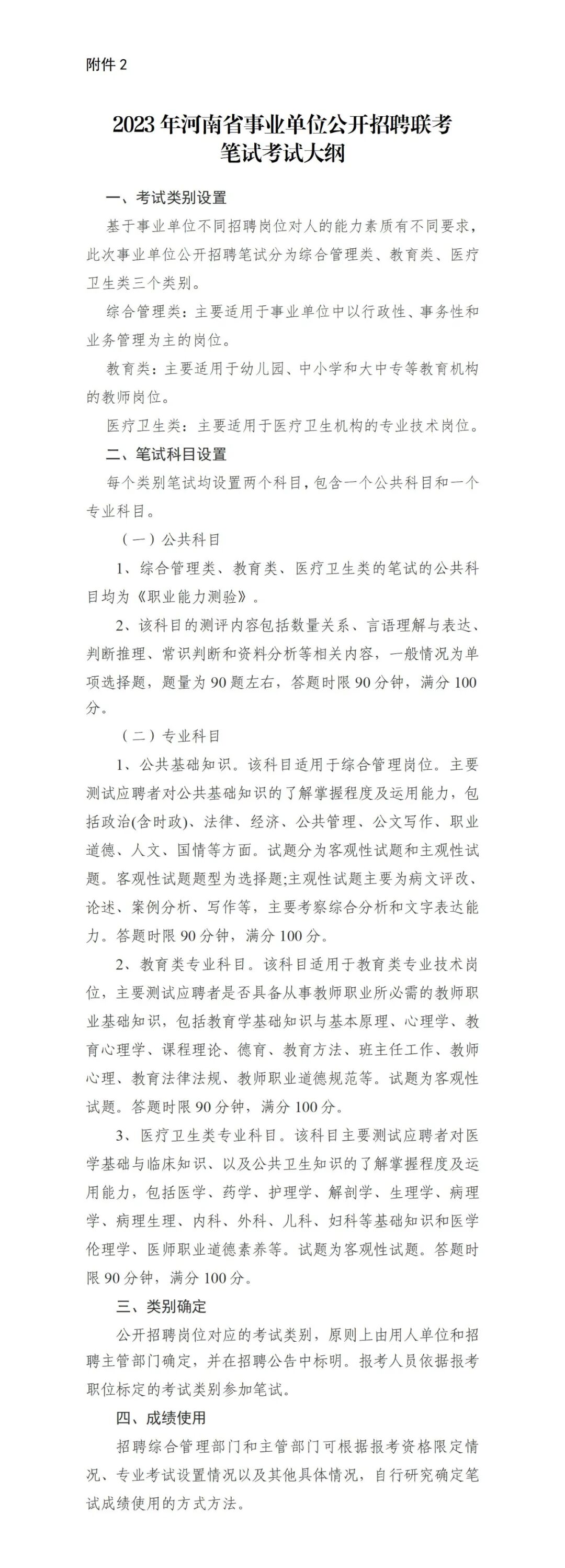2.2023年河南省事業(yè)單位公開招聘聯(lián)考筆試考試大綱